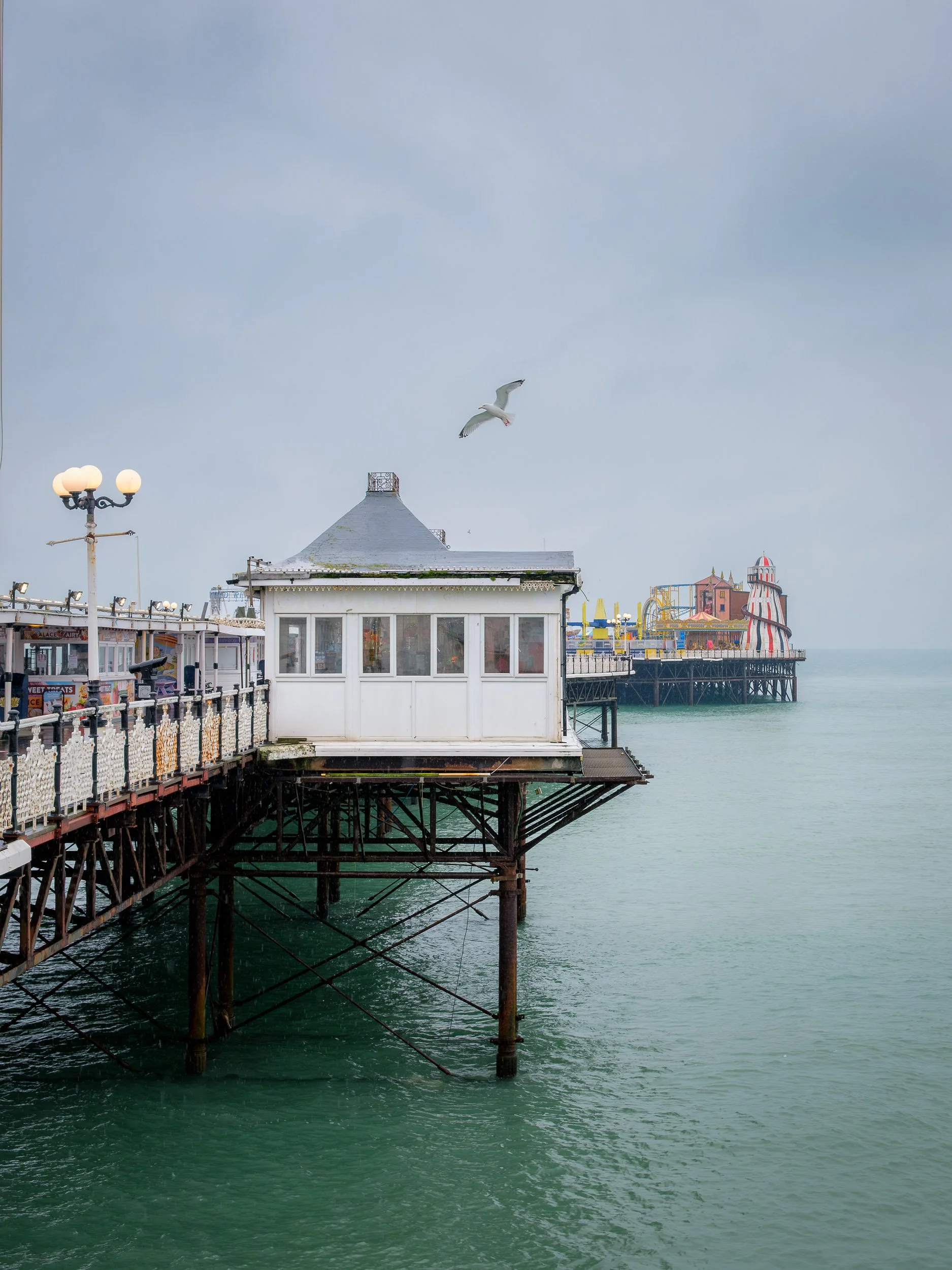 Some places get under your skin - there doesn’t seem to be any rhyme or reason as to why, they just do. Part of it, I think, is that we holidayed there a couple of times when I was a kid, but that was over 50 years ago. In more recent years we’ve visited a few times - see here for my last solo trip. The larger part is that I have an affection for seaside towns out of season; they’re obviously quieter with a more melancholic feel, which I like. From a photographic standpoint the light, if you get it, can be really quite nice and if you don’t get the light there’s a good chance you’ll get drama or mood. That explains the lure of coastal towns, but possibly not Brighton.